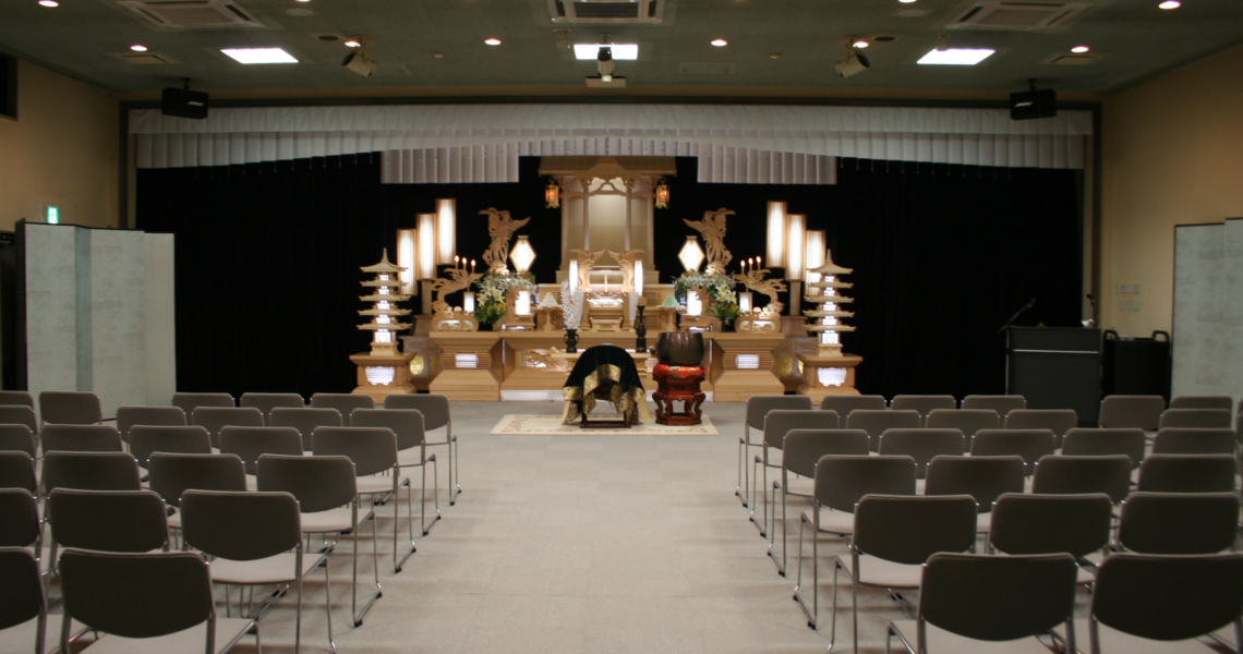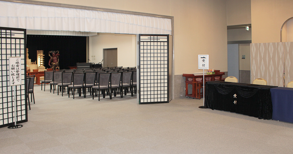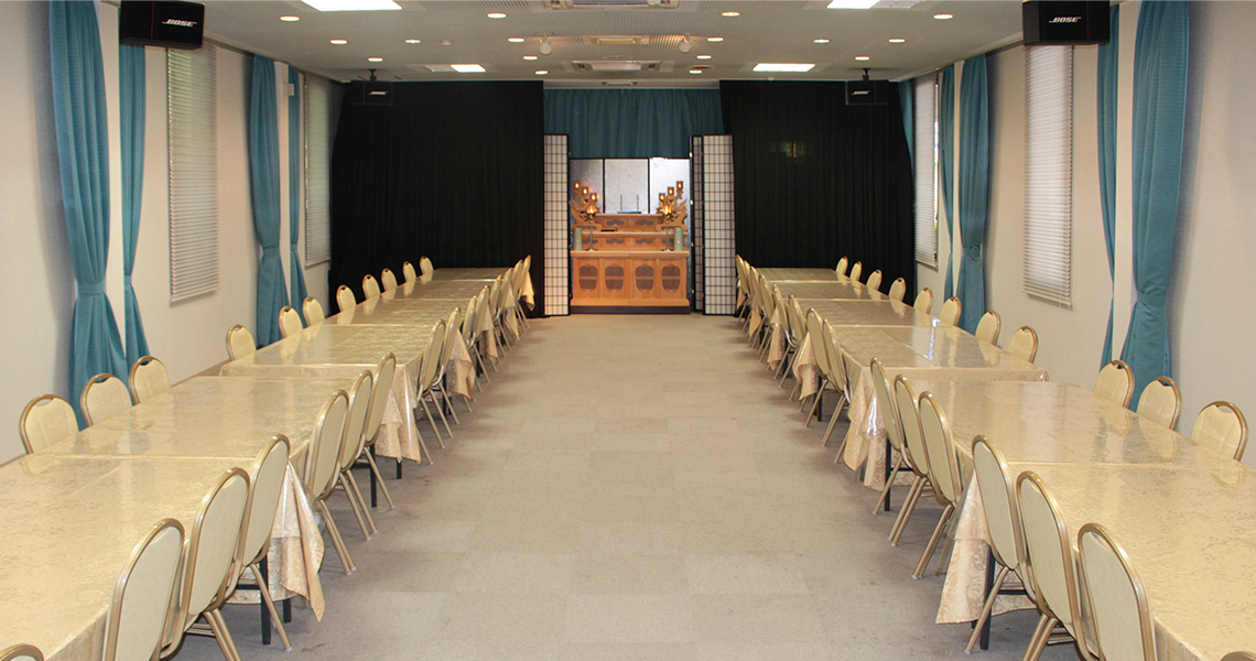 儀式の大小や、宗教・宗派にかかわらずご利用いただけます。また会場の敷地内にはご葬儀はもちろん、お通夜からご法宴まで行われる通夜会場の別棟「ゆかり苑」をご用意。心やすらかな別れの時をまごころを込めてお手伝いいたします。