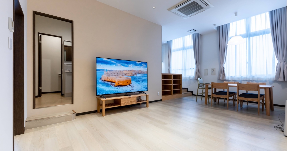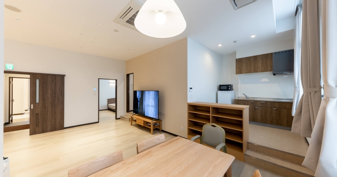 - リビング・ベッドルーム・キッチン・バスルーム完備