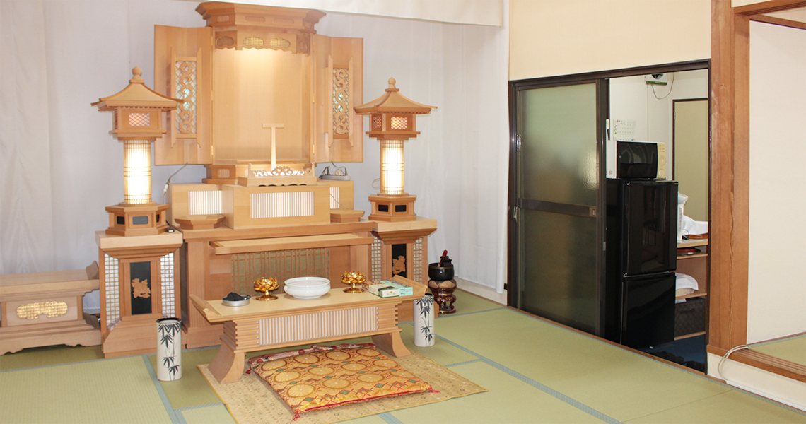 少人数でご利用いただける宿泊可能な通夜会場です。お料理・お飲物を自由にお持ち込みいただくことができ、またご希望によりお通夜の精進料理も承ります。