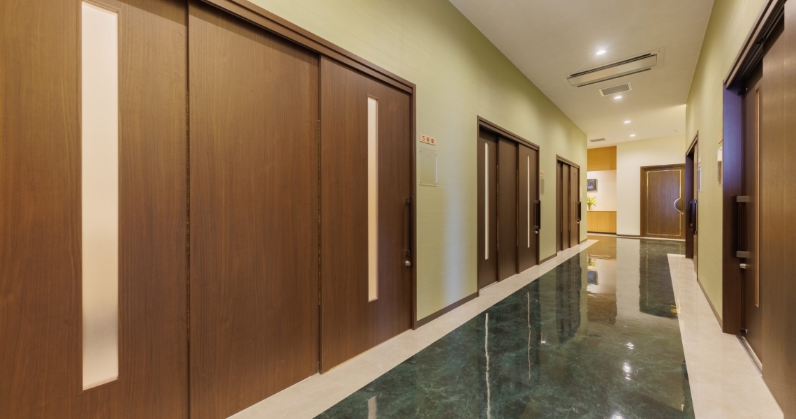 原則として、病院などで人が亡くなった時には、なるべく早く遺体を運び出さなければなりません。施設のベッドを空ける必要があり、まずは病院内の安置室に移動することが多いと思います。しかし、安置室も限りがあります。死後の処置を含めて数時間は預かっていただけますが、24時間以上預けておくことはまずできません。『ご安置レジデンス郡山昭和』は、事情によりご自宅などに帰ることができない場合でも、ご家族の方と直接ご入館いただき一緒に過ごすことの出来る完全プライベート空間を確立した新しい施設です。利用者は24時間いつでも外出することができ、シャワールームやタオル・アメニティもご用意しております。今後の打ち合わせをさせていただく相談室は別にご用意しておりますので、ご利用いただくお部屋はご自宅の1室としてお使いください。『ご安置レジデンス郡山昭和』はご遺族の方が安心できる環境を24時間365日ご用意いたしております。